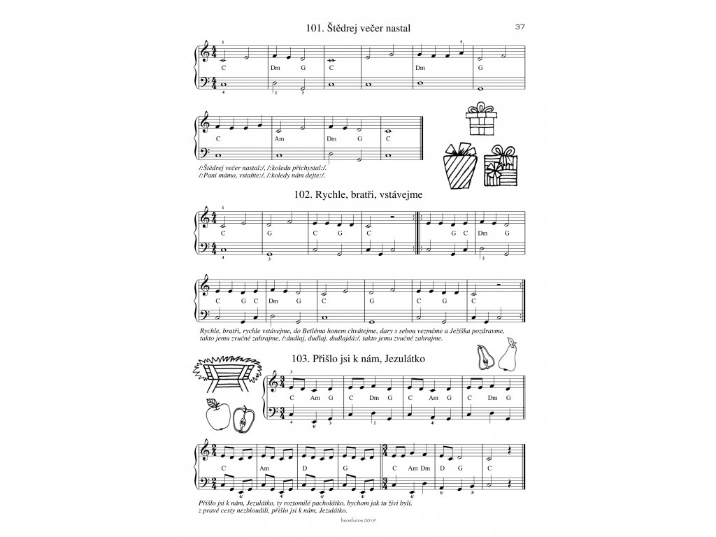 • progresivně řazené úpravy písní a koled rozvíjející hráčské dovednosti