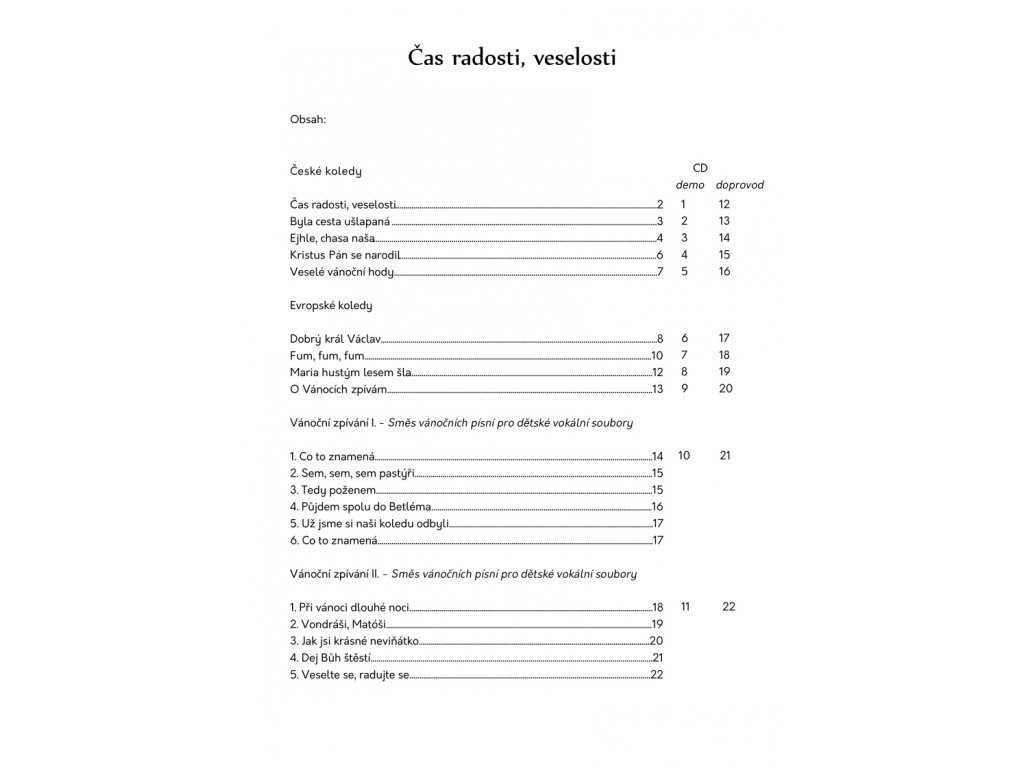 Vánoční koledy a písničky na CD nazpívaly členky koncertního sboru Radost - Praha, přípravný sbor Koťata a chlapecký sbor Pueri gaudentes. Krásné vánoční melodie s nádherným doprovodem na přiloženém CD Vám pomohou navodit příjemnou vánoční atmosféru na Vašich vystoupeních a koncertech.