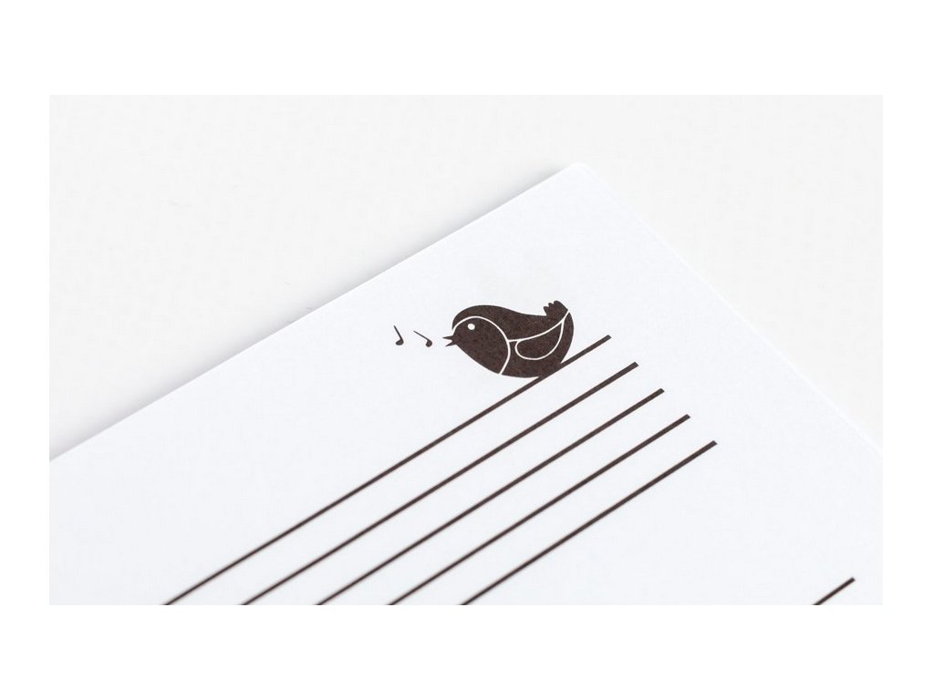 Notový sešit formátu A5 má 16 listů / 32 stran, 4 notové osnovy na jedné straně.