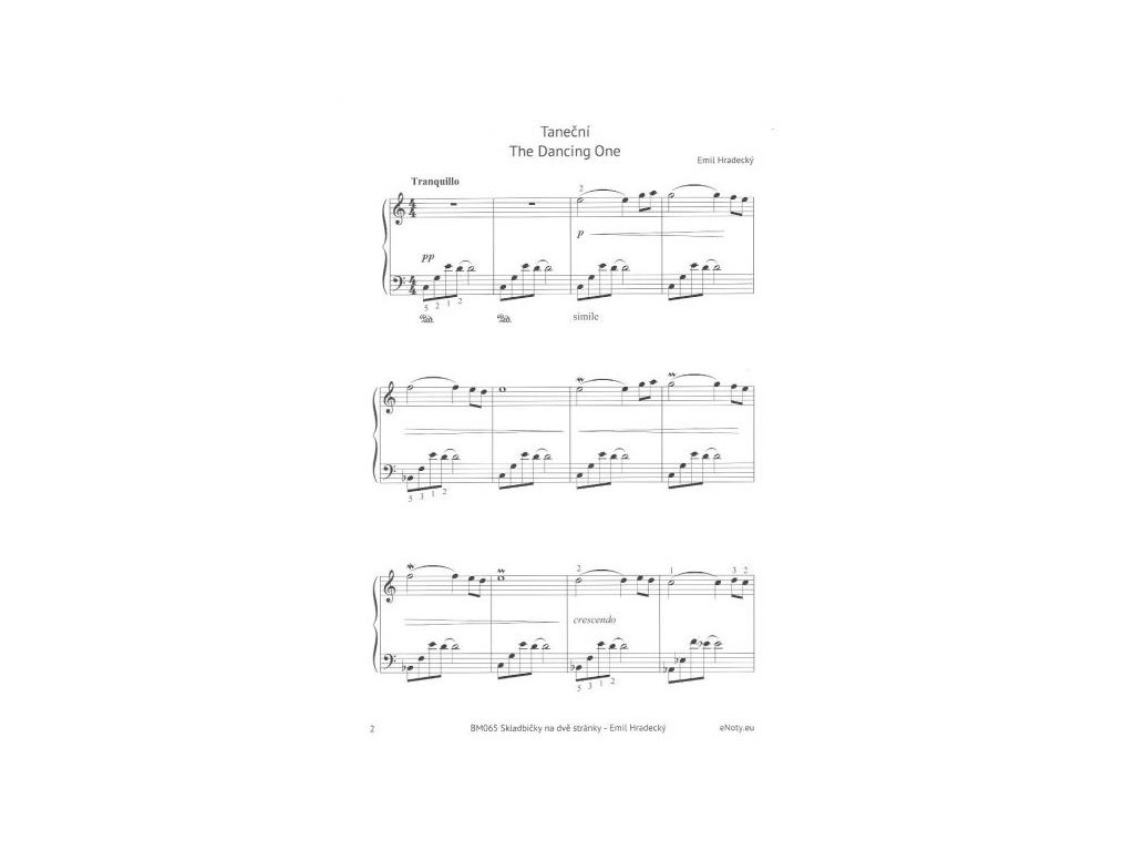 Emil Hradecký (*1953) je jedním z významných českých skladatelů, kteří se ve své tvorbě inspirují nejen taneční hudbou a jazzem, ale také klasickou hudbou. Tento sešit Vám nabízí pět originálních a příjemných dvoustránkových skladbiček s melodickou invencí, která je vlastní pro všechny Hradeckého skladby. Obtížnost skladeb 3. - 4. ročník ZUŠ.