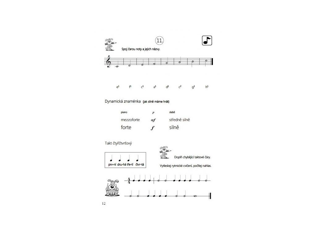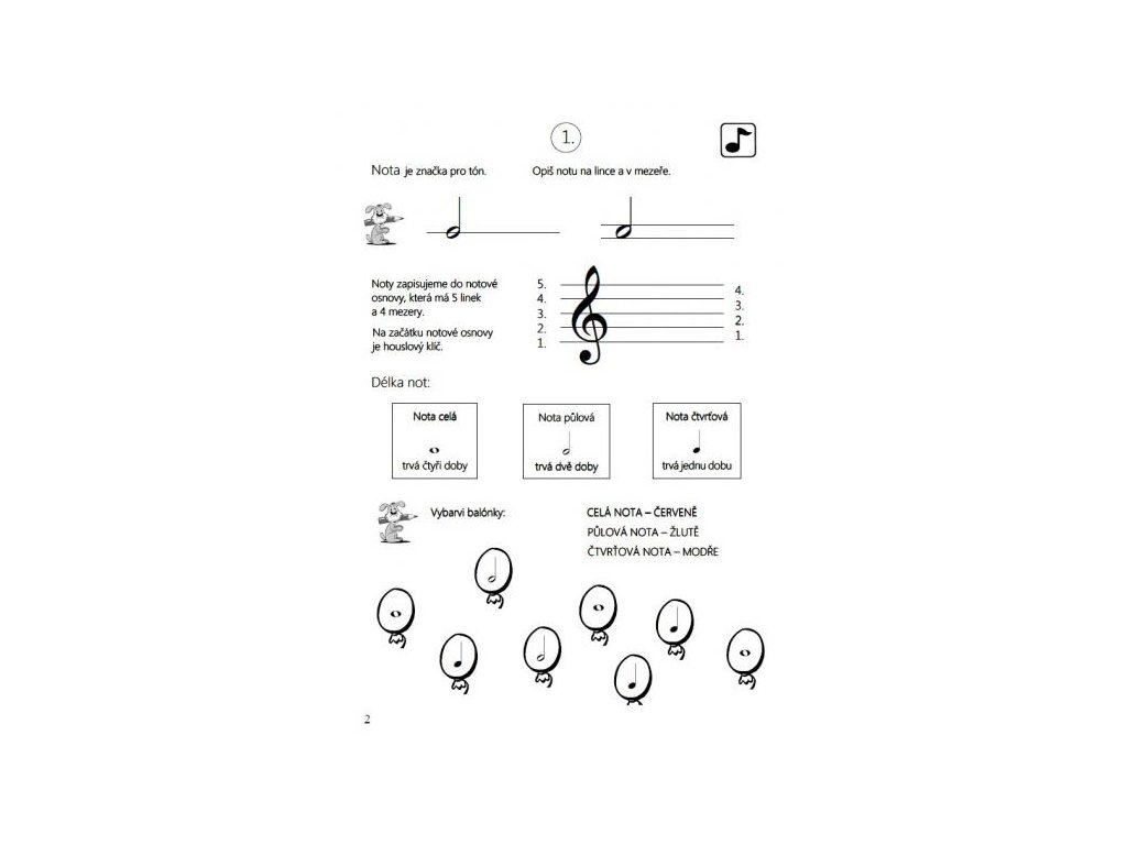 Sešit obsahuje snadné úkoly na procvičování not a hudební pojmy. Se sešitem lze pracovat v hudební výchově na prvním stupni ZŠ a lze jej doplňkově využít i v ZUŠ při opakování učiva. Je také vhodným pomocníkem pro domácí procvičování a individuální přípravu.