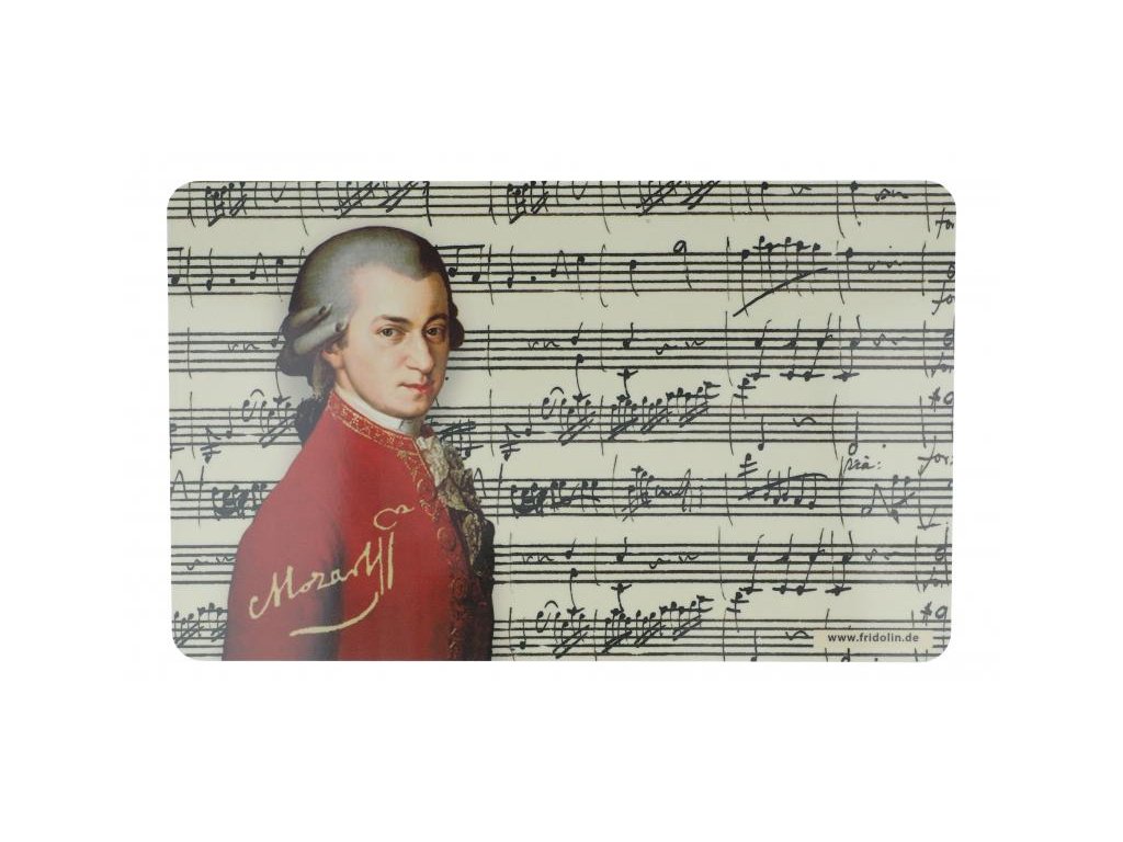 Krájecí prkénko s motivem známého skladatele, rozměry 23,5 x 14,5 x 0,2 cm.