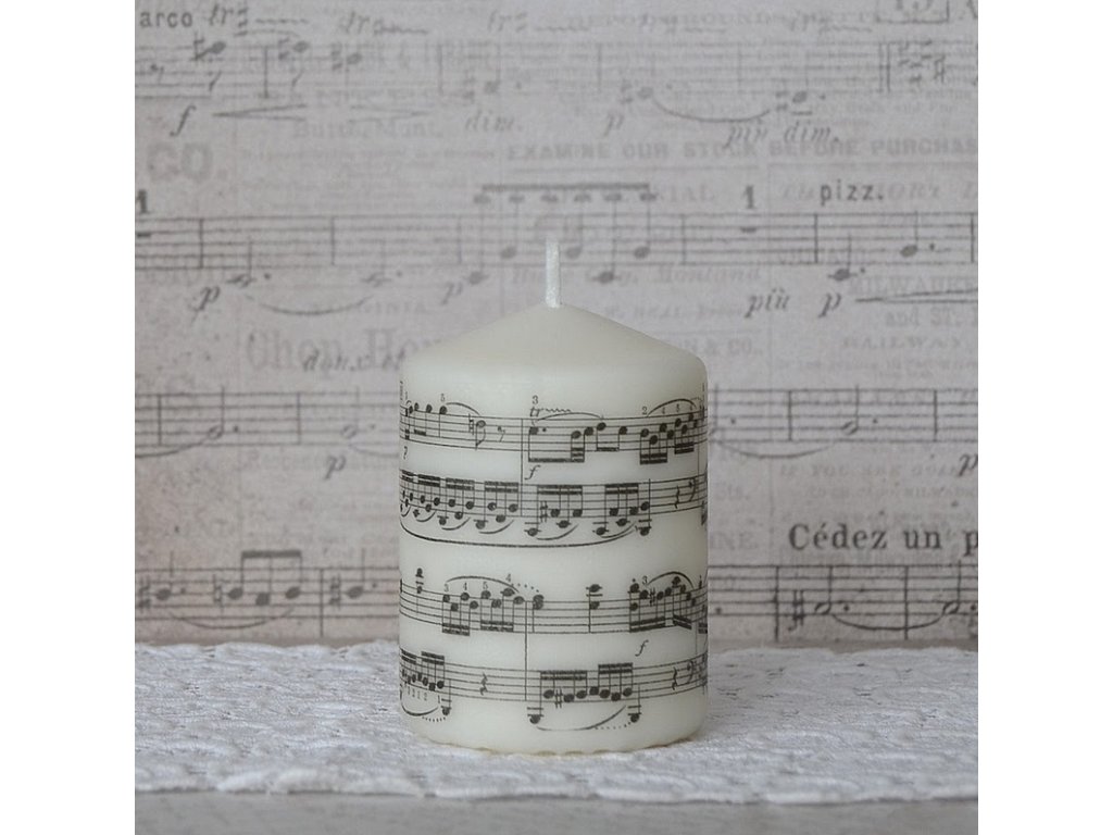 Neparfemovaná smetanově bílá svíčka o velikosti 8 x 6,5 cm.