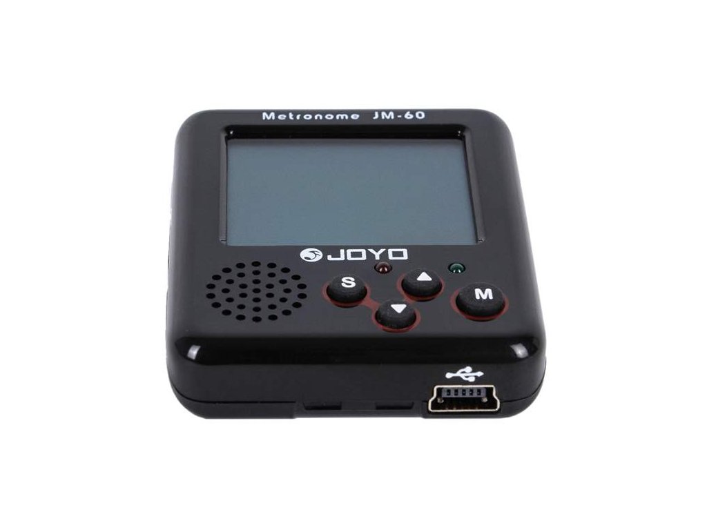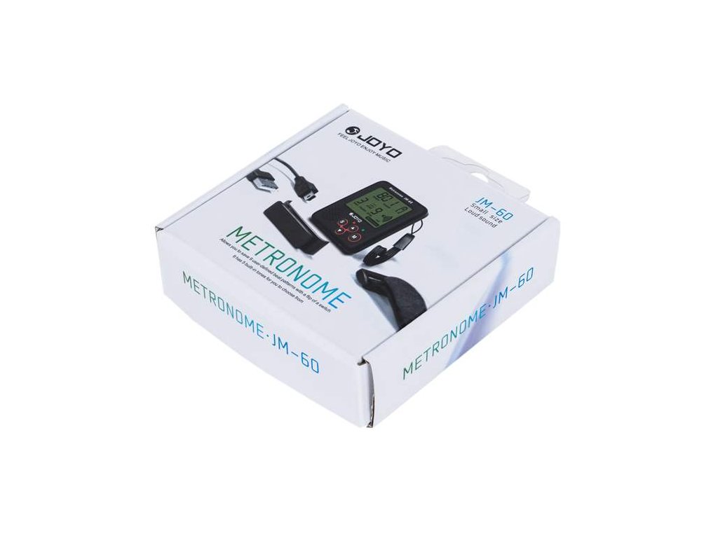 JM-60 je praktický mini metronom, který i navzdory malé velikosti dokáže vyprodukovat jasný a hlasitý zvuk. Díky zabudované lithiové baterii vydrží fungovat velmi dlouho a lze ho dobít pomocí USB adaptéru. Existuje spousta způsobů, jak metronom JM-60 používat: je možné ho postavit a opřít o zadní opěrku, připevnit k zápěstí nebo přichytit k opasku. Součástí metronomu je 10 různých zvuků kliku a paměť na 9 rytmických schémat.
