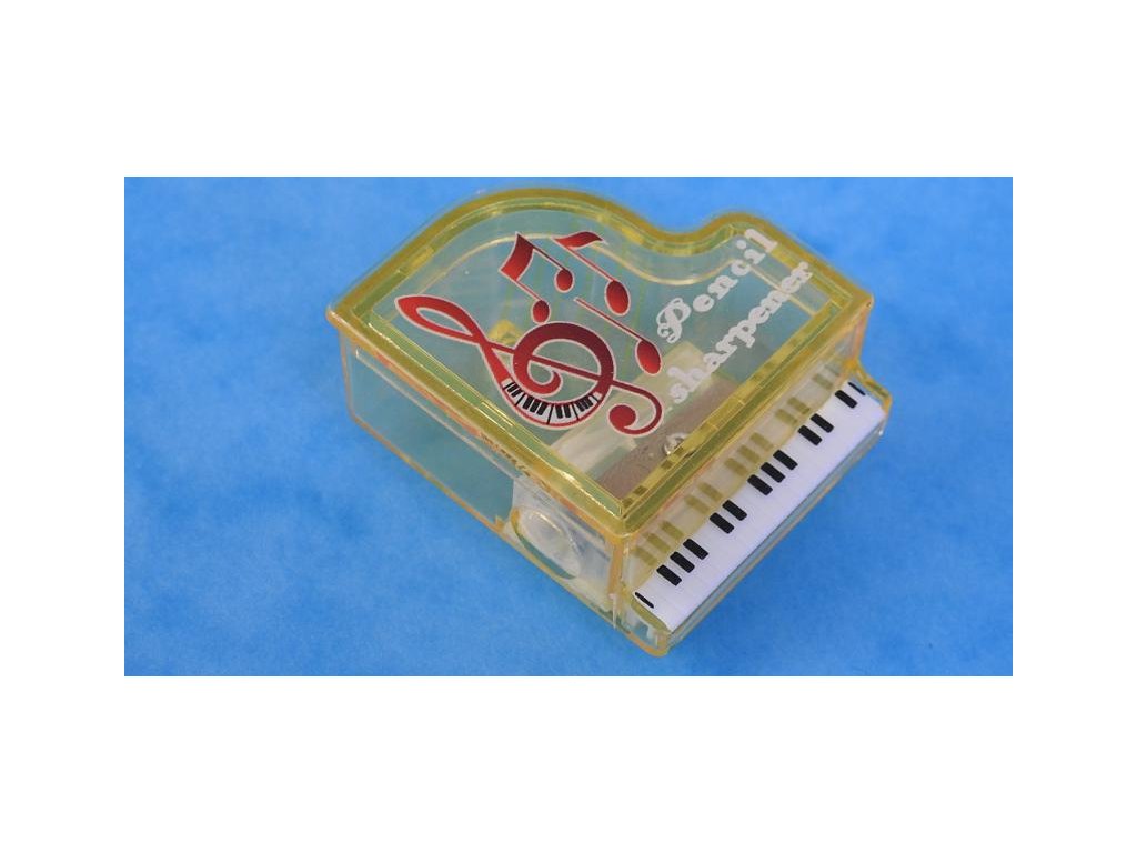 Ořezávátko na tužky ve tvaru klavíru, barva žlutá.