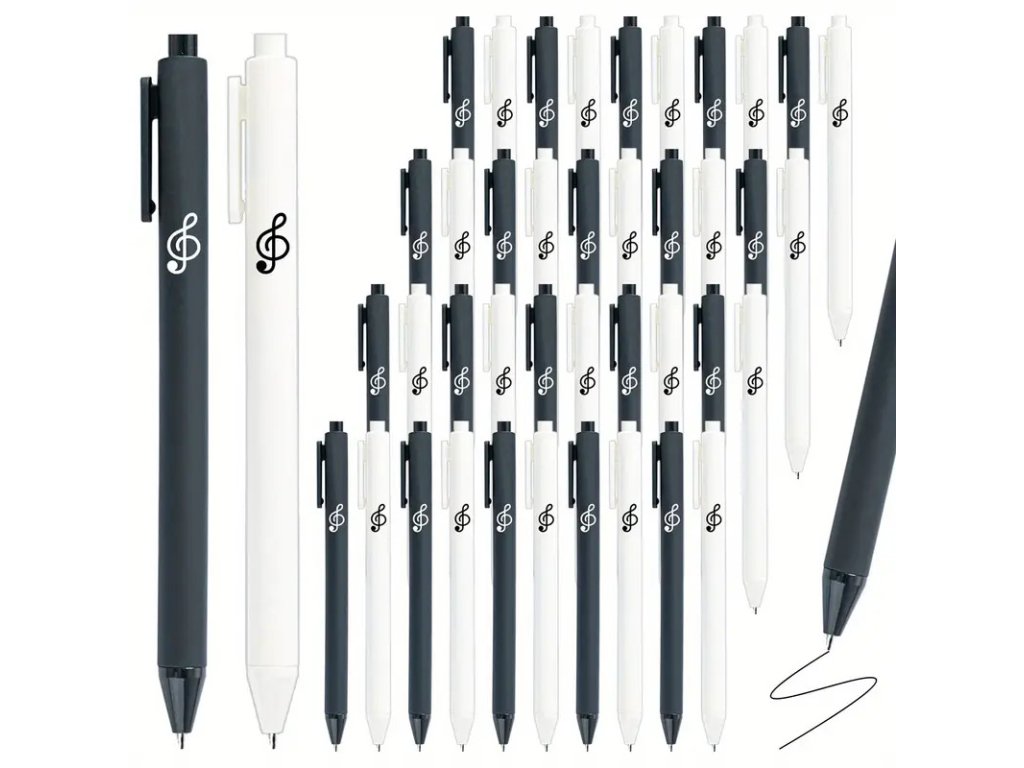 Komplet 40 kuličkových psacích per v bílém a černém provedení.