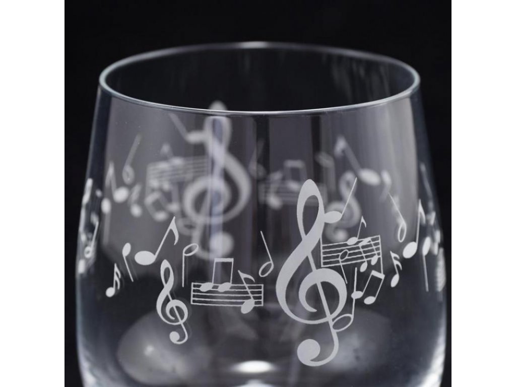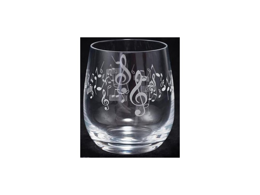 Sklenička s motivem houslových klíčů a not, objem 360 ml.