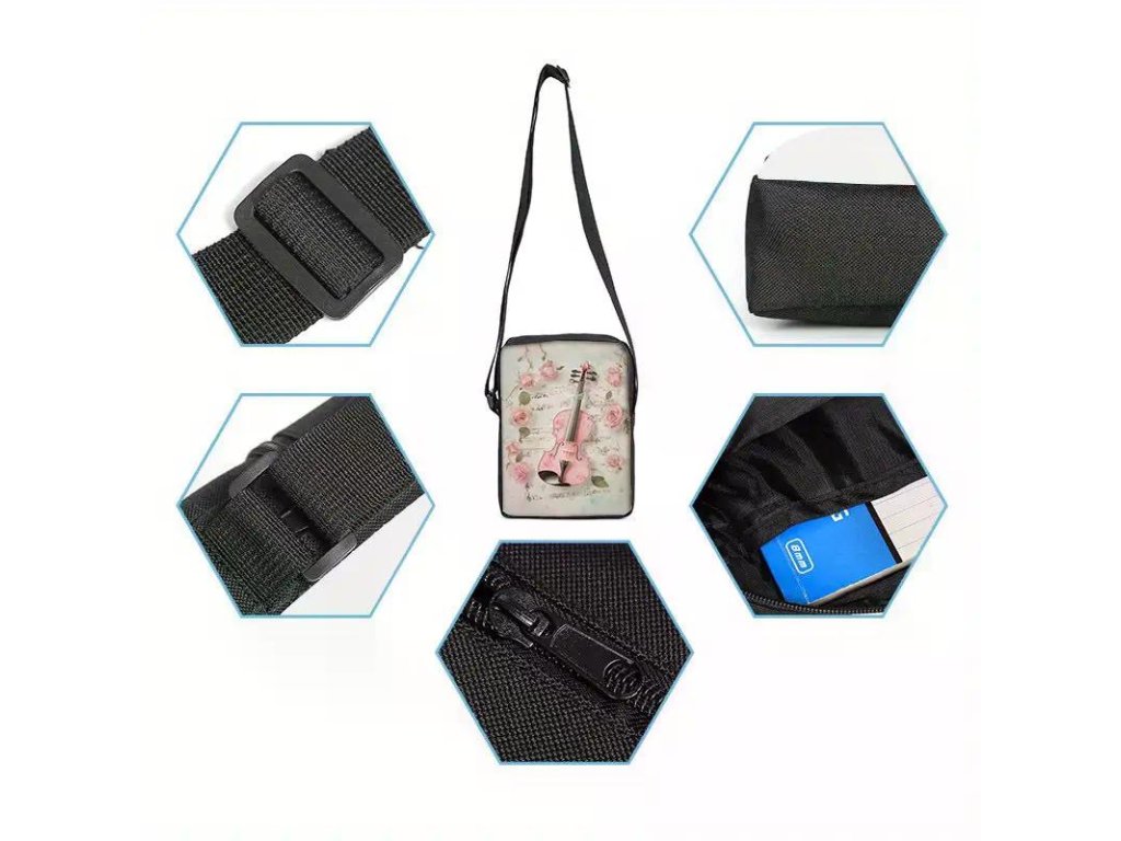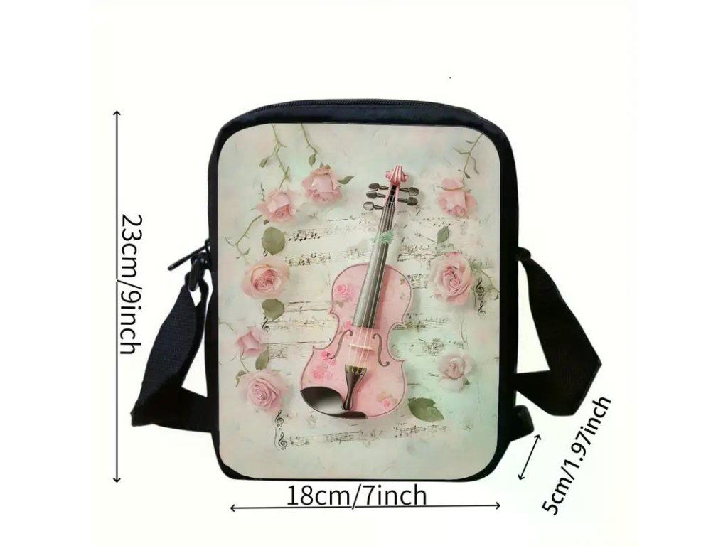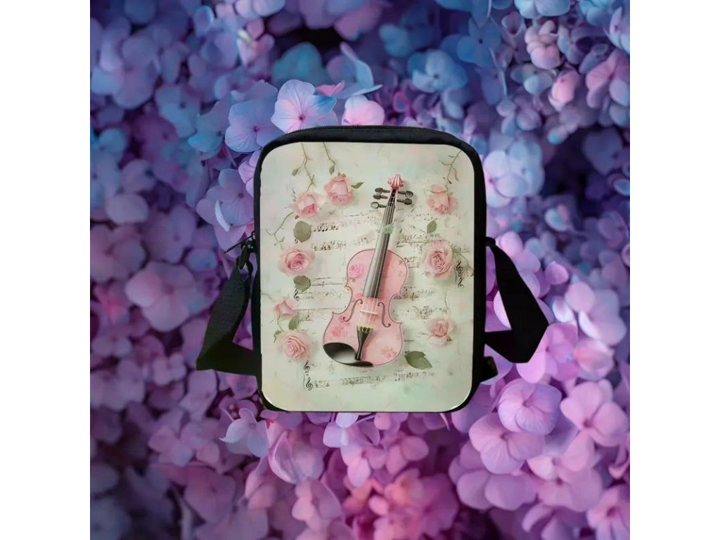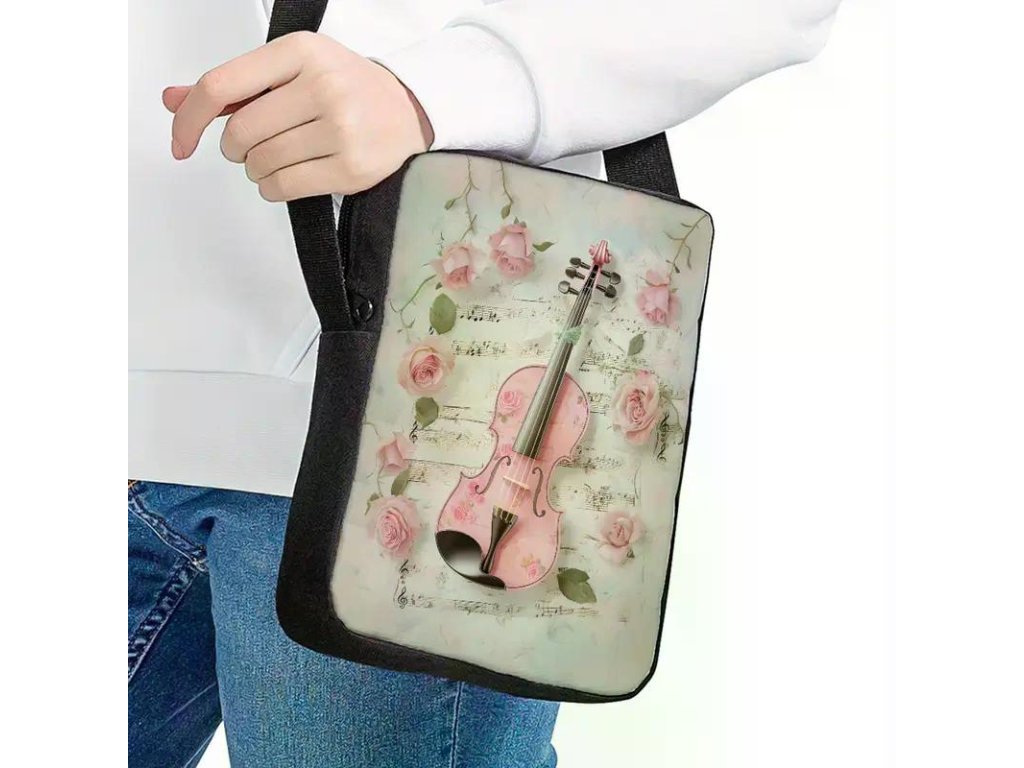 Taštička přes rameno s motivem houslí vhodná na výlety, večírky, do parku atd.